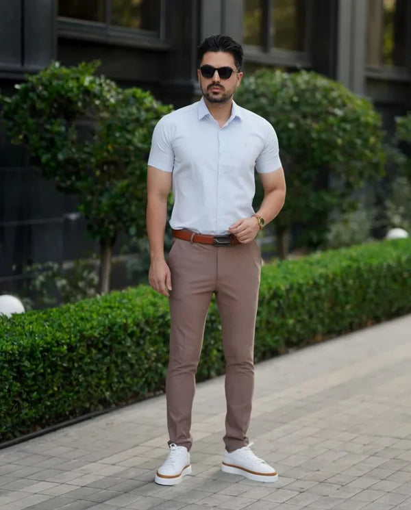 The shirt impresses with its simple elegance and the pleasant, high-quality fabric. It fits very well and can be styled in many ways ideal for everyday wear and the office. Very satisfied!